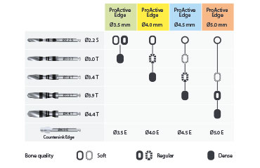 İmplantın yiv ve şekillendirme tasarımı bir vida yuvası görevi görür ve bu sayede ProActive ® Edge implant için özel yiv açıcıya gerek yoktur.