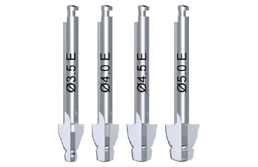 Gerektiğinde, her implant çapı için bir boyun açıcı frez mevcuttur. Boyun açıcı frezler bağlantıları 'E' ile işaretlenmiştir.