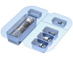 İmplant Kitinde İmplant, Kapama Vidası, iki farklı boyutta PEEK (polyetereterketon) İyileşme Başlıkları ve vidası bulunur.