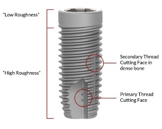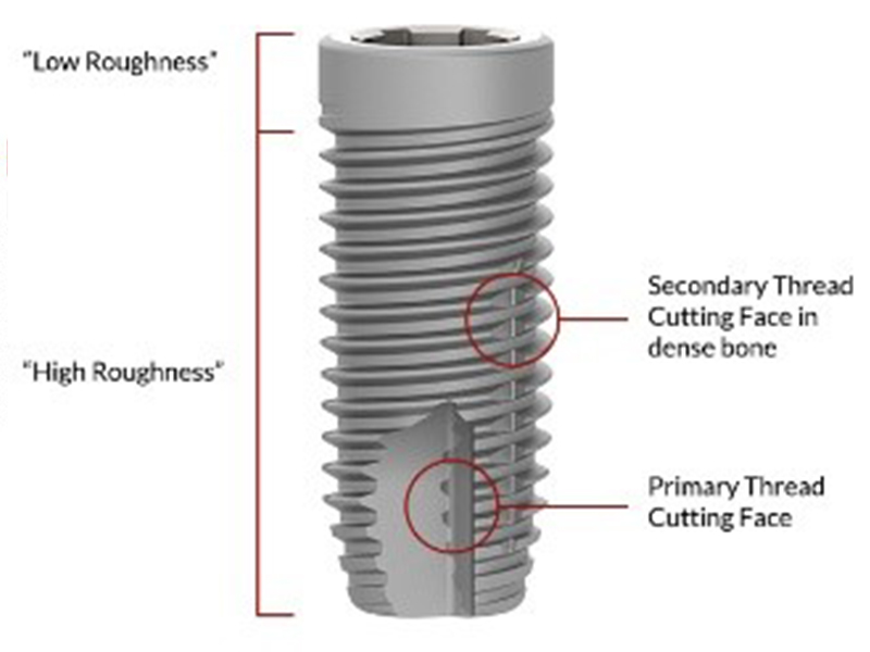 Straight implant body and unique Thread Cutting and Forming design